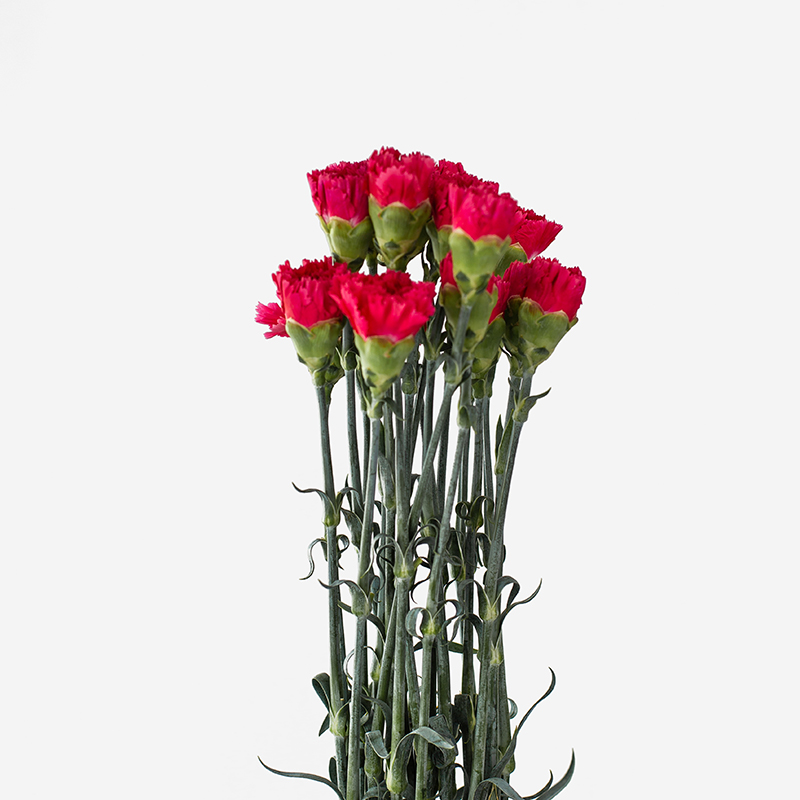 El clavel colombiano es una de las variedades más valoradas en el sector floral por su calidad y resistencia. Procedente de cultivos especializados en Colombia, se caracteriza por un tallo firme y consistente que facilita su manipulación en floristería y garantiza una buena durabilidad.