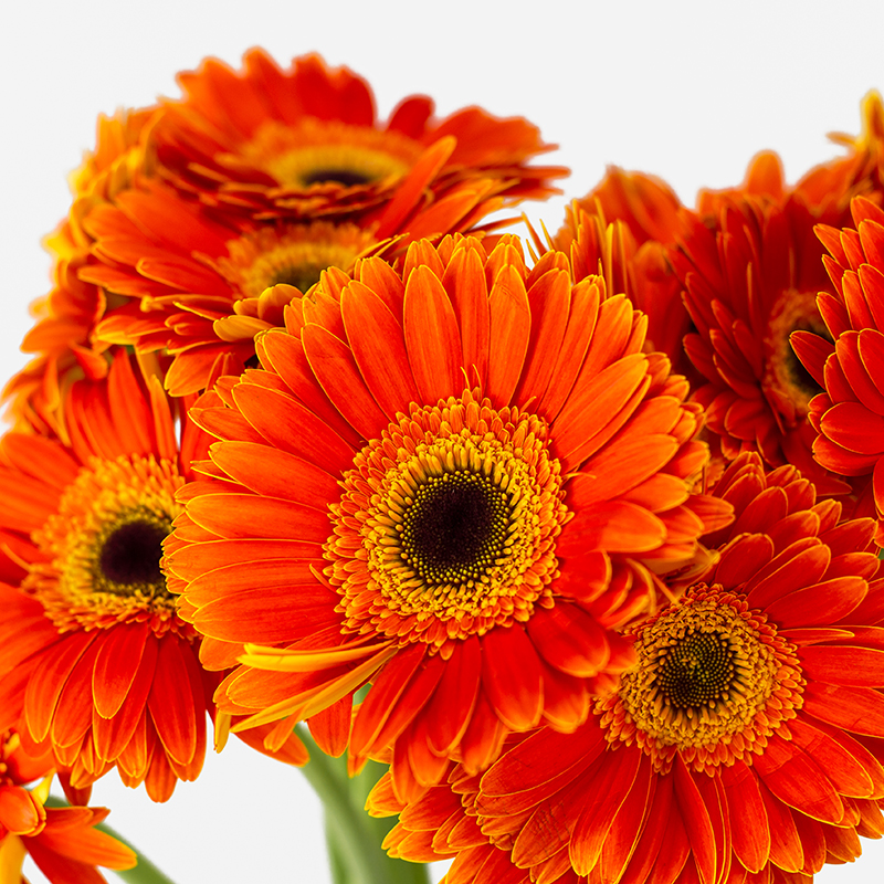 La gerbera grande se utiliza frecuentemente en ramos, centros florales y composiciones donde se busca aportar color, protagonismo y volumen.