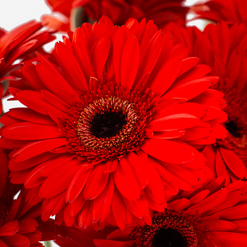 La gerbera grande se utiliza frecuentemente en ramos, centros florales y composiciones donde se busca aportar color, protagonismo y volumen.