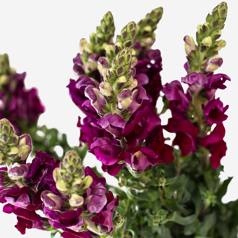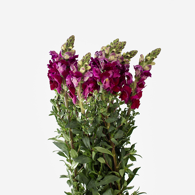 El antirrhinum, también conocido como boca de dragón, es una flor muy apreciada en floristería por su estructura vertical y su elegante forma. Esta variedad aporta altura y volumen a las composiciones florales, convirtiéndose en una opción muy utilizada por profesionales del sector.