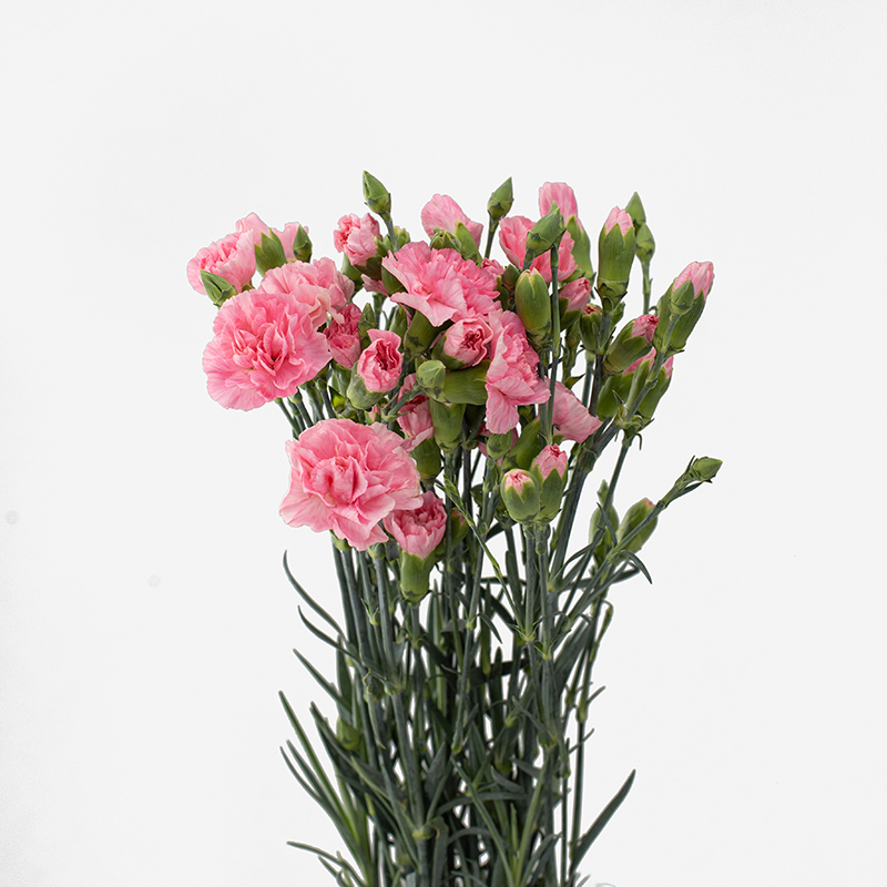 El mini clavel, también conocido como clavellina, es una variedad muy apreciada dentro del sector floral por su estructura ramificada y la abundancia de pequeñas flores en cada tallo. Esta característica permite crear composiciones con mayor volumen y dinamismo, aportando color y textura a los arreglos.
